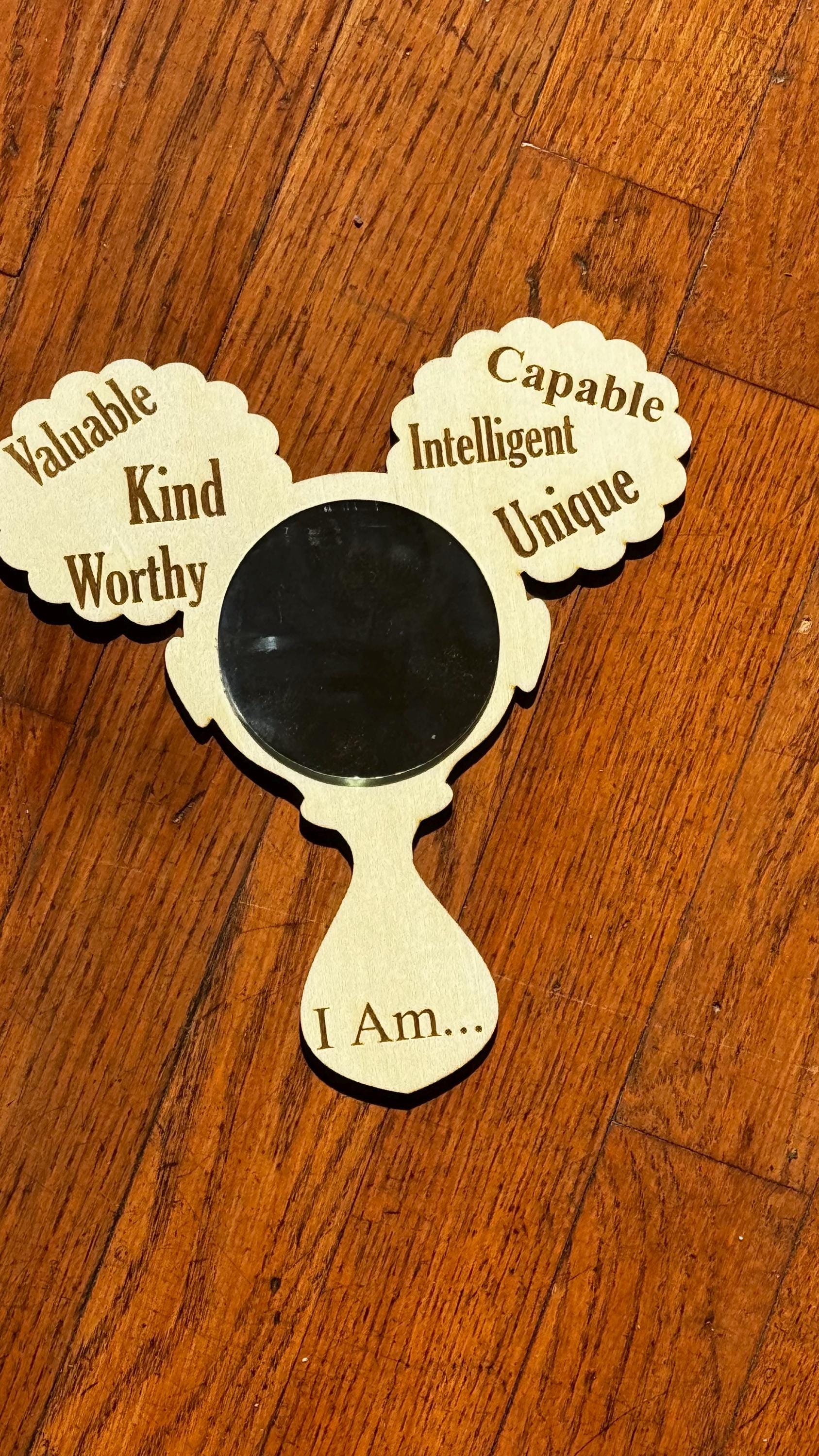 Affirmation Mirror - Wooden Handheld Mirror with Positive Words