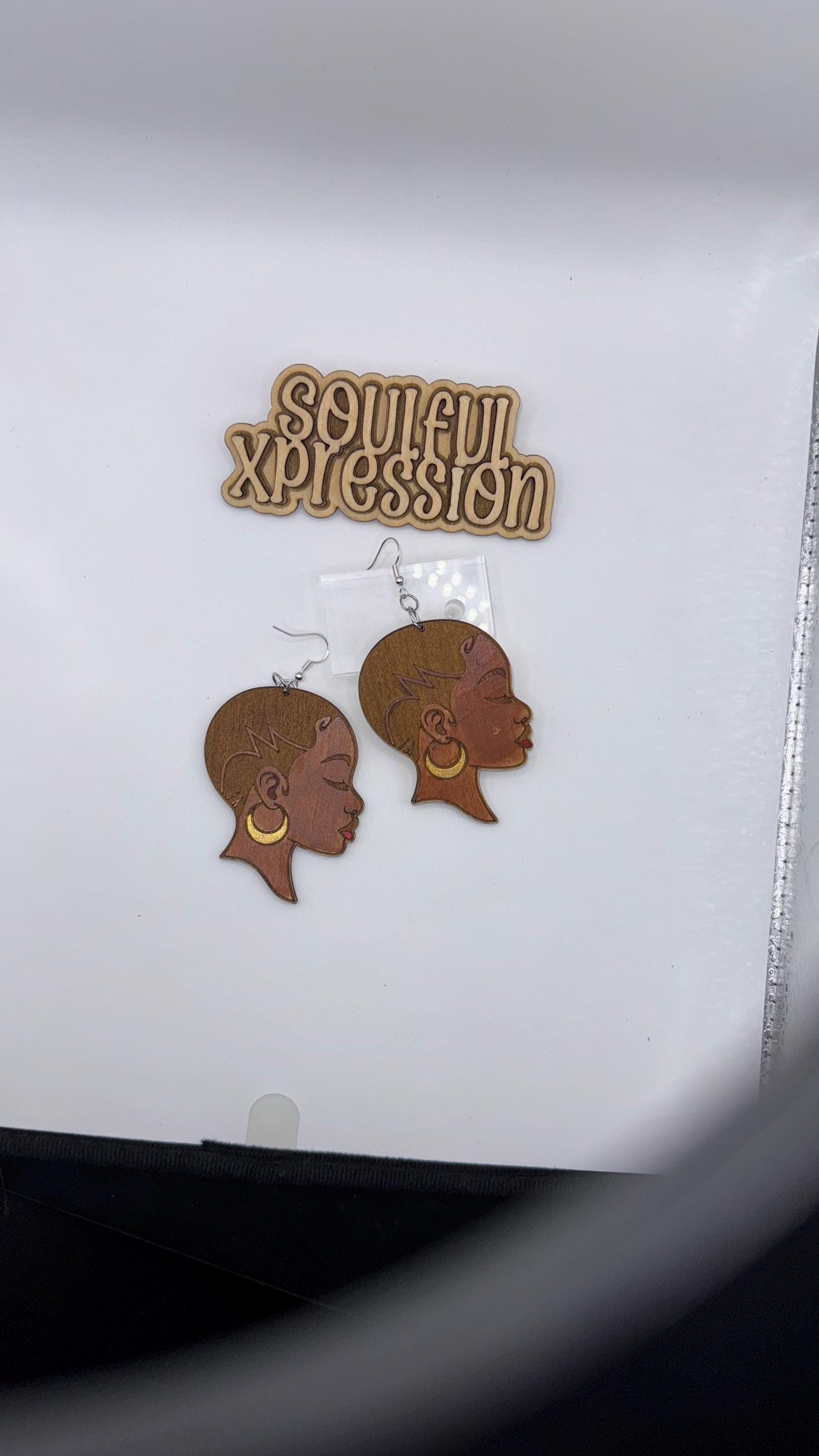 Bald Beauty Wooden Earrings – Hand-Painted Natural Goddess Silhouette | Soulful Xpression Collection