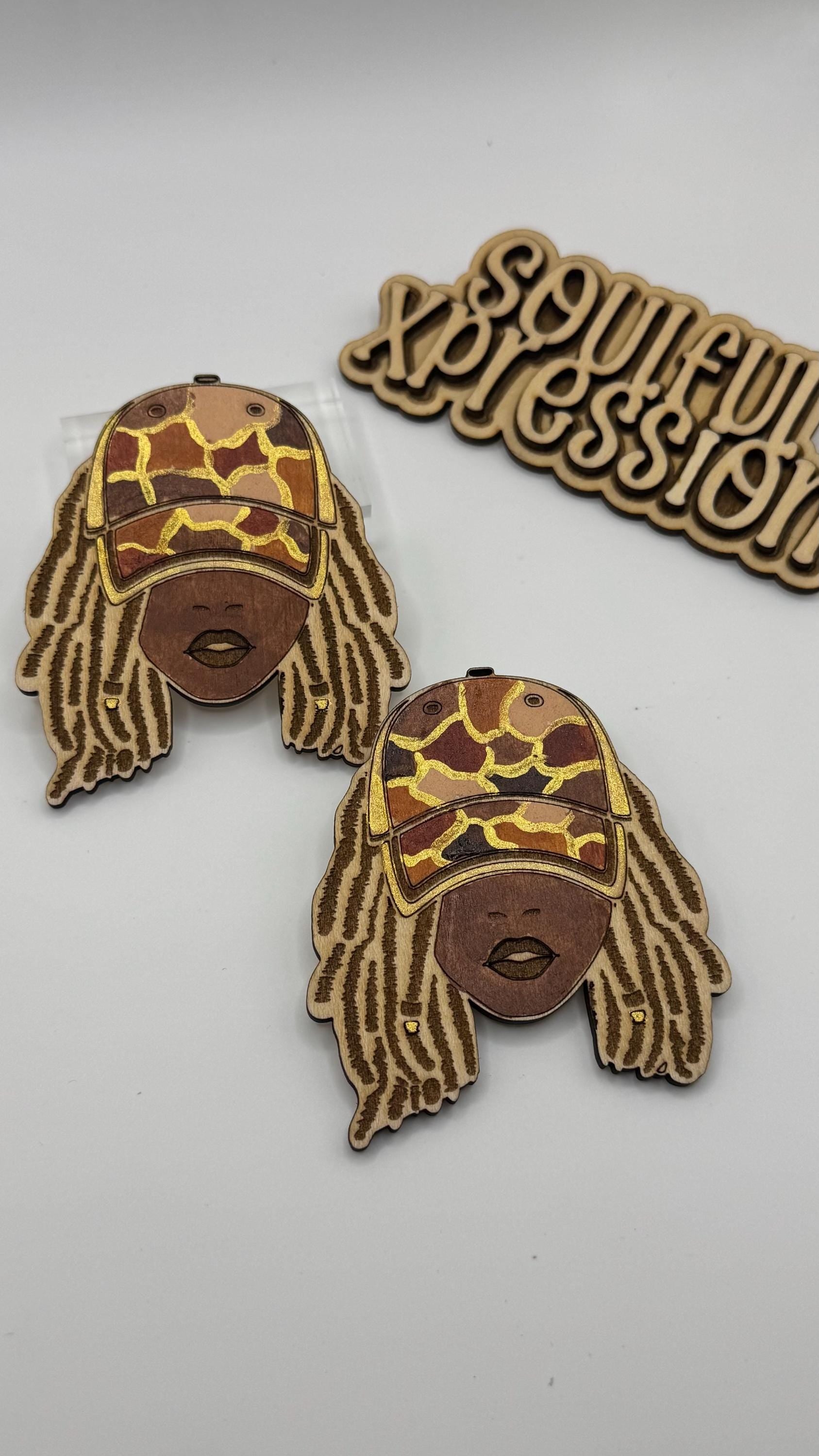 Loc’d Goddess Wooden Earrings – Afrocentric Streetwear Style | Hand-Painted Soulful Xpression Design